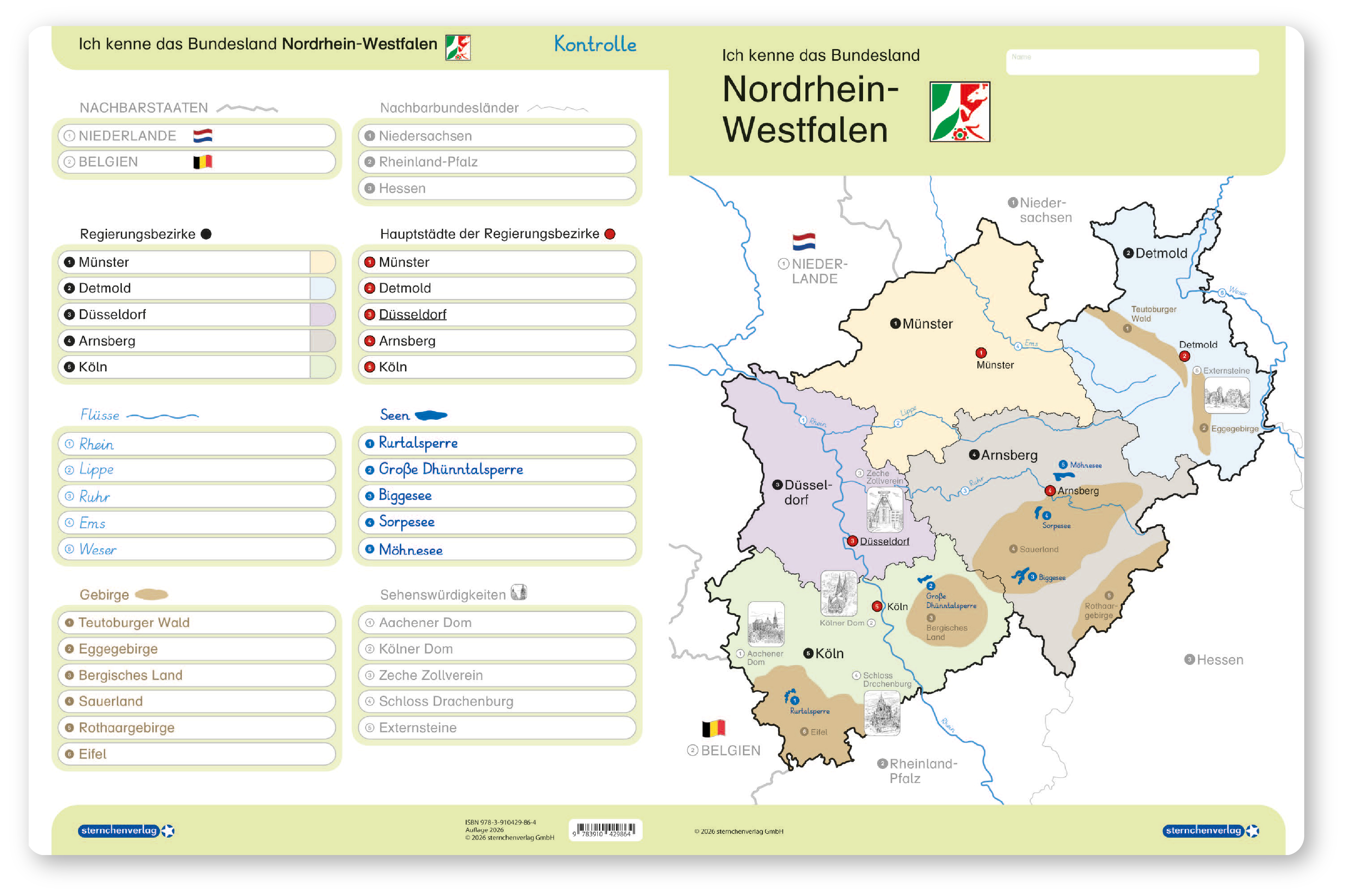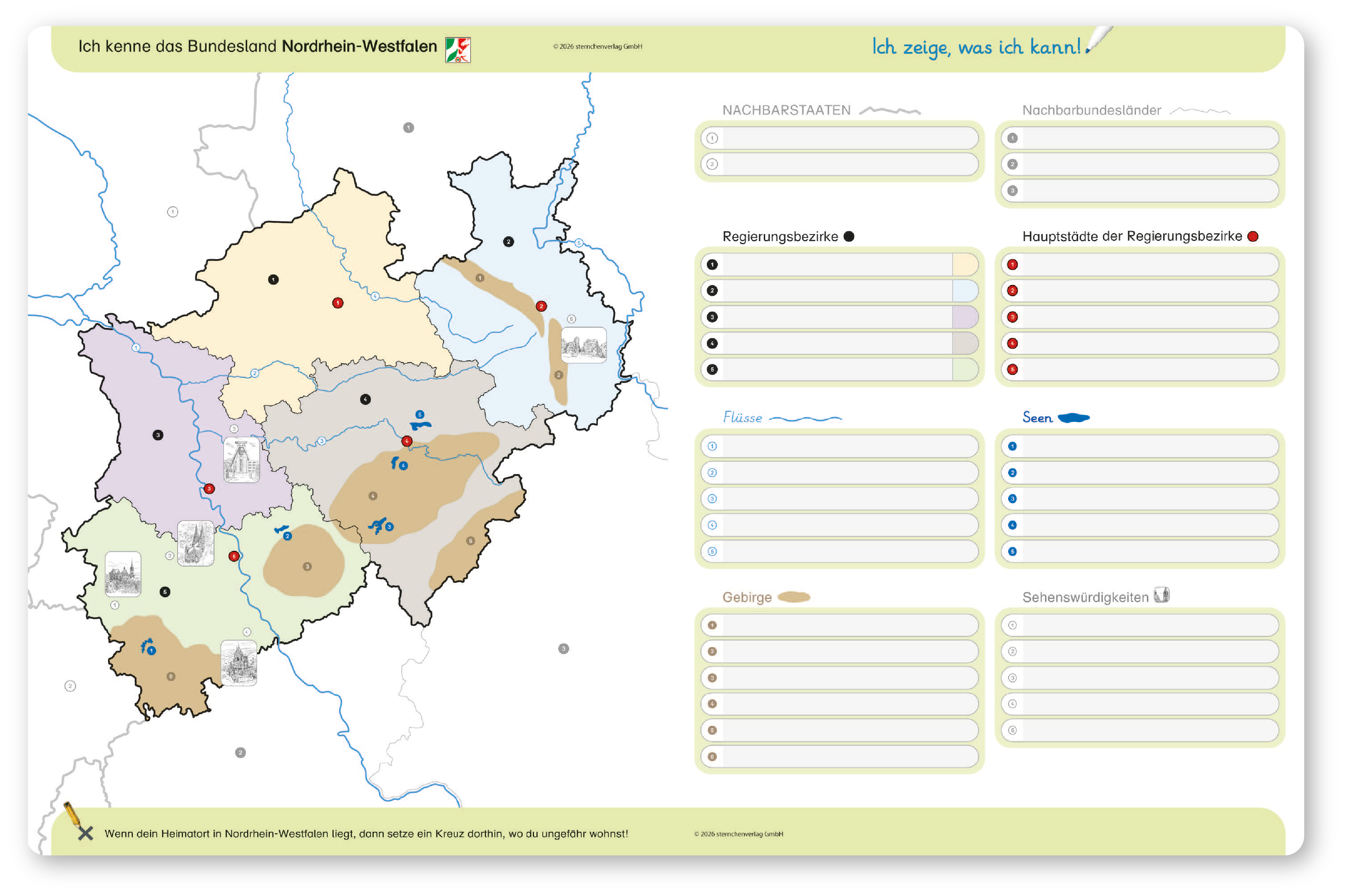 Ich kenne das Bundesland Nordrhein-Westfalen - Lerntafel ohne Stift