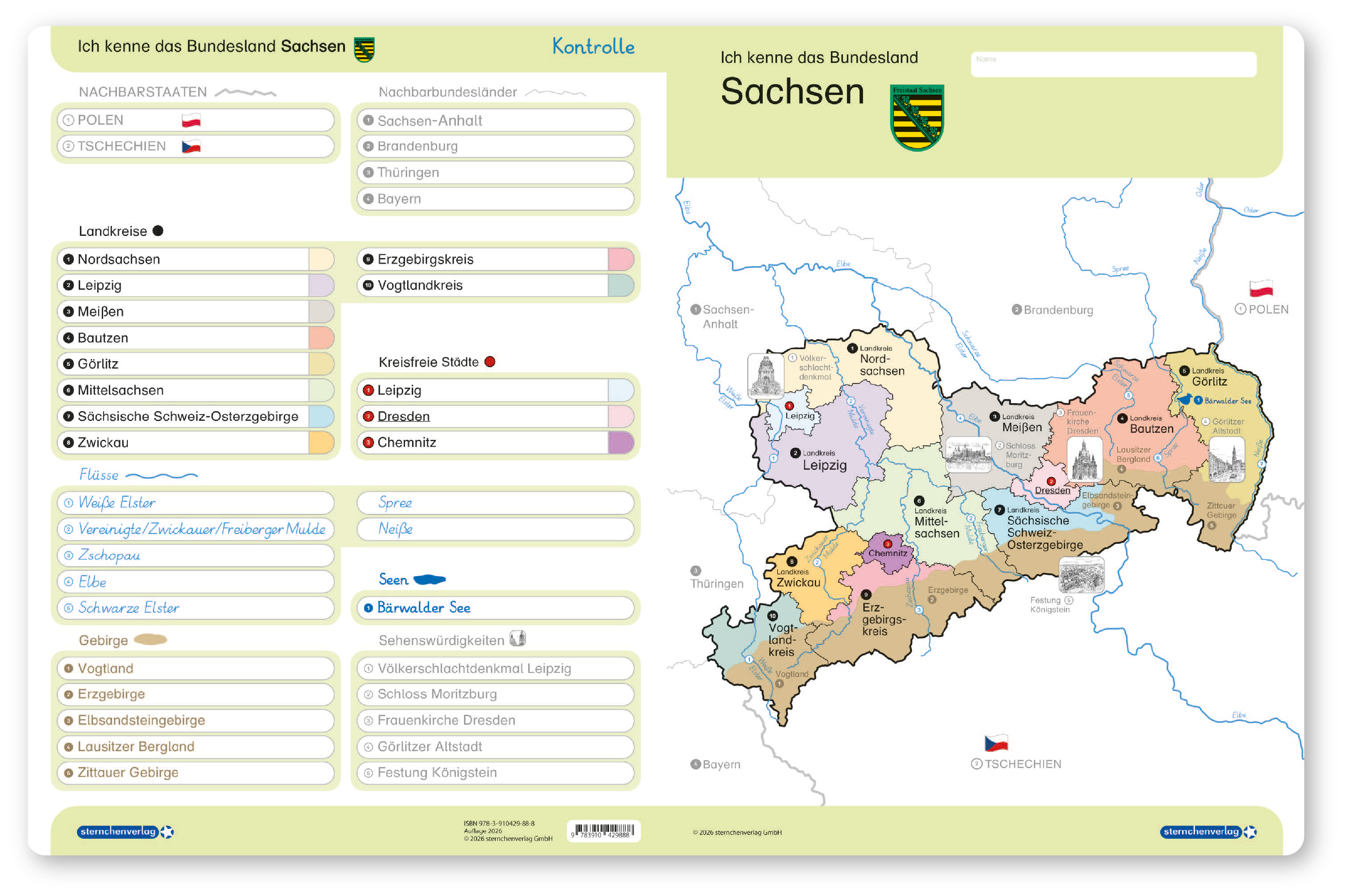Ich kenne das Bundesland Sachsen - Lerntafel ohne Stift