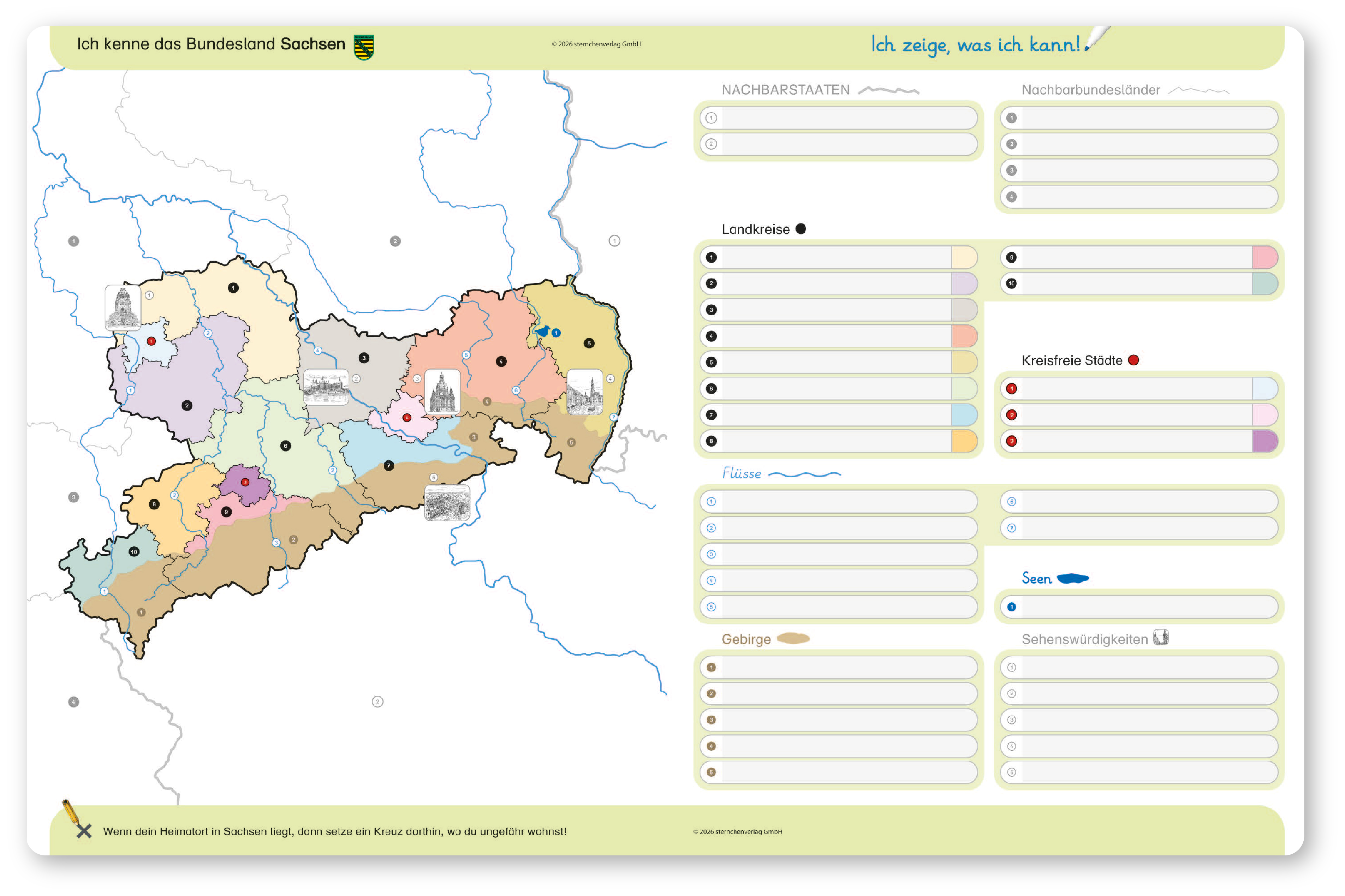 Ich kenne das Bundesland Sachsen - Lerntafel mit Stift