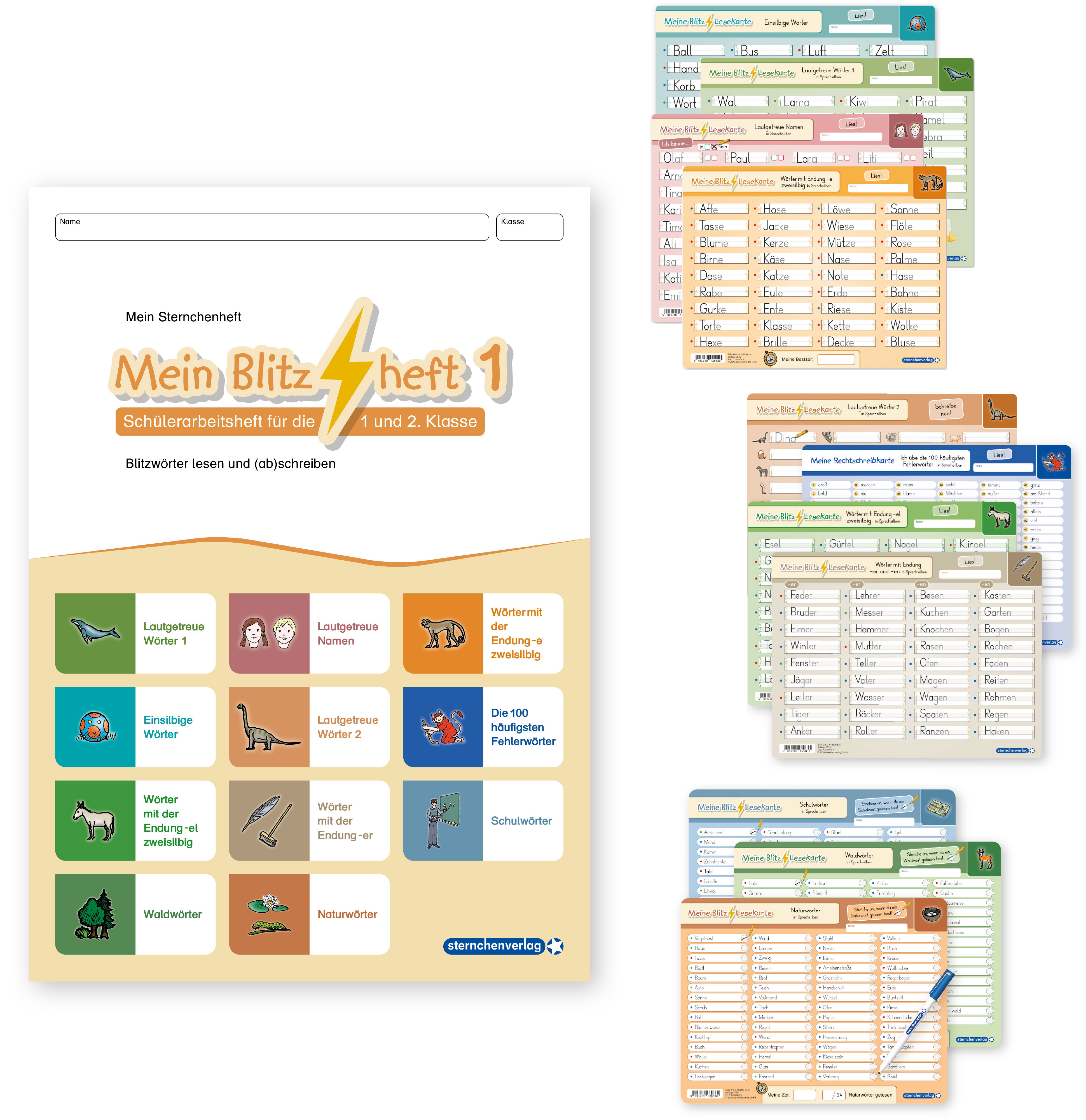 - Kurzübersicht: Mein Blitzheft 1 und 11 Blitzlesekarten mit Stift